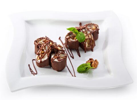 Bay leaf Chocolate ganache icing Fresh rosemary Fresh thyme